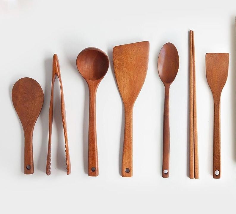 Upgrade your kitchen with this beautifully crafted 7-piece wooden utensil set made from premium natural teak wood. Sustainably sourced and built for everyday cooking, this set pairs form and function in a durable, eco-conscious package.