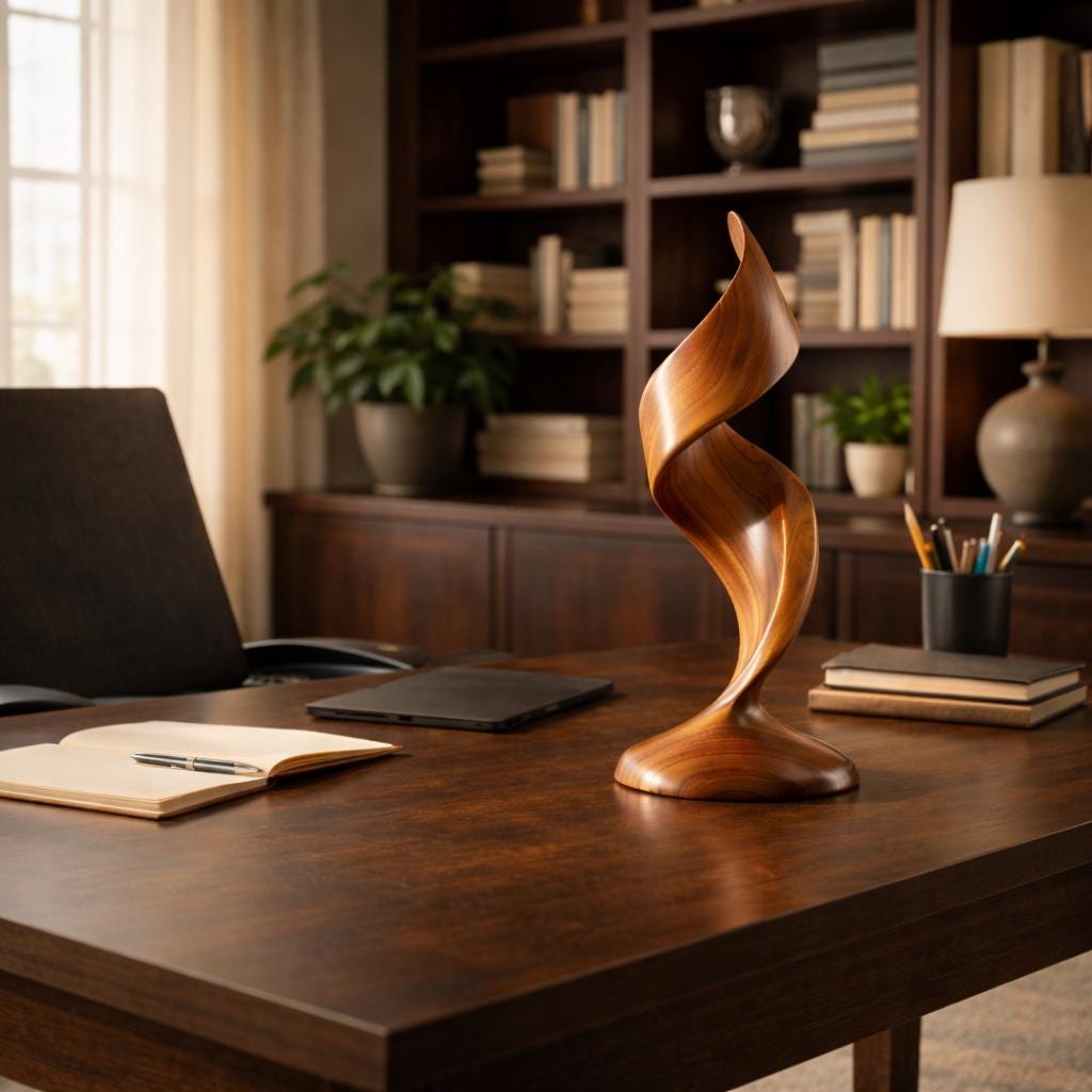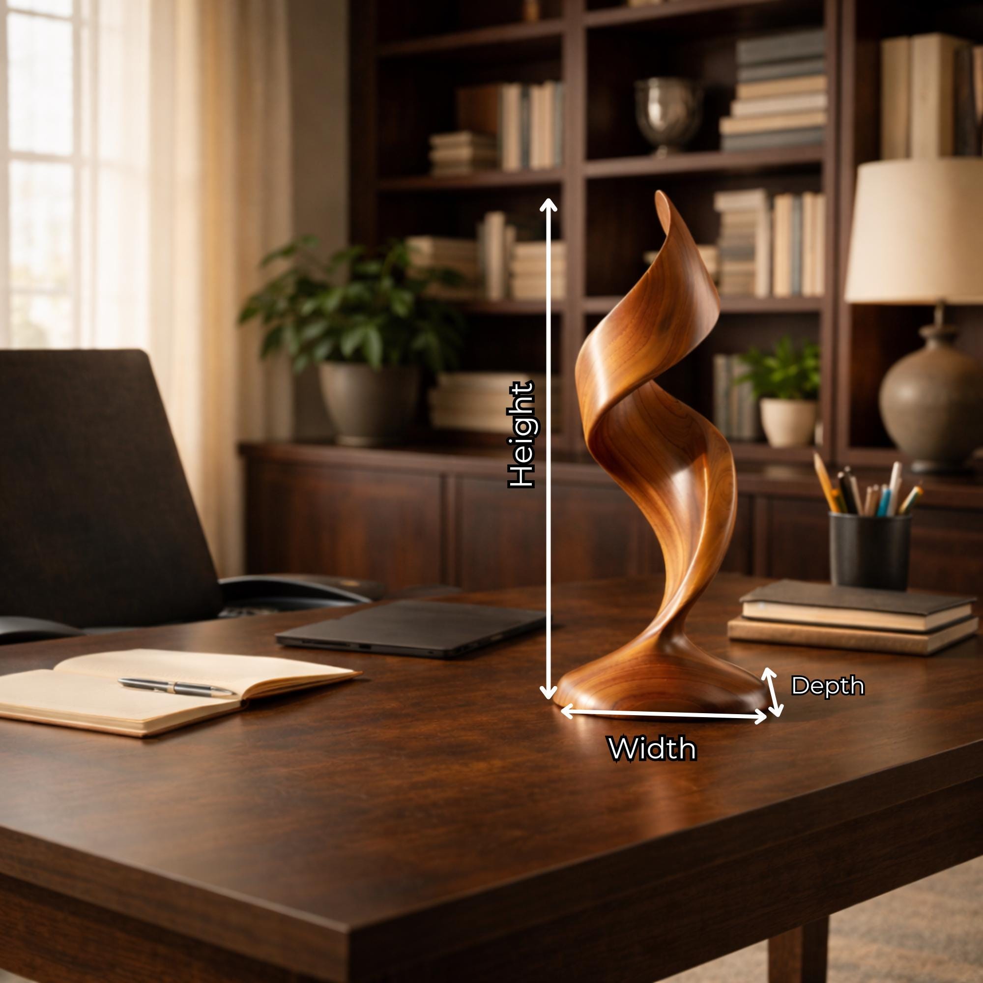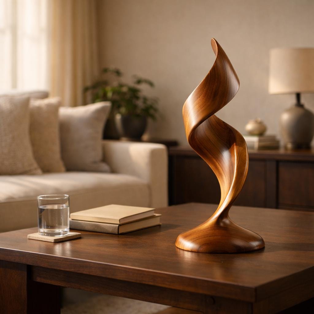 Each sculpture is individually crafted — wood grain variations make every piece one of a kind.