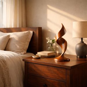 Add warmth and elegant movement to your space with this abstract wood sculpture. Featuring a flowing organic silhouette, this handcrafted piece creates a refined focal point on bedside tables, consoles, shelves, and desks.