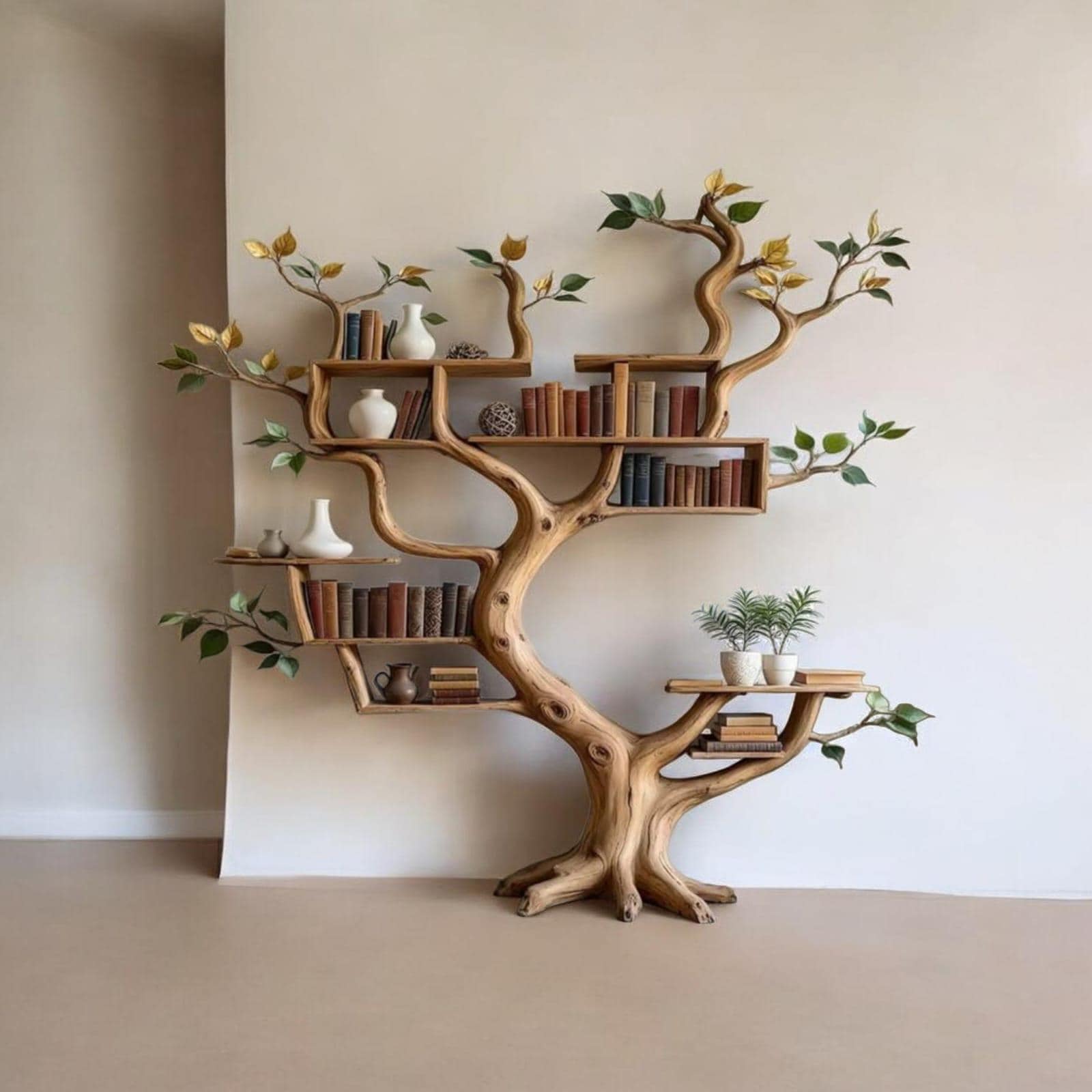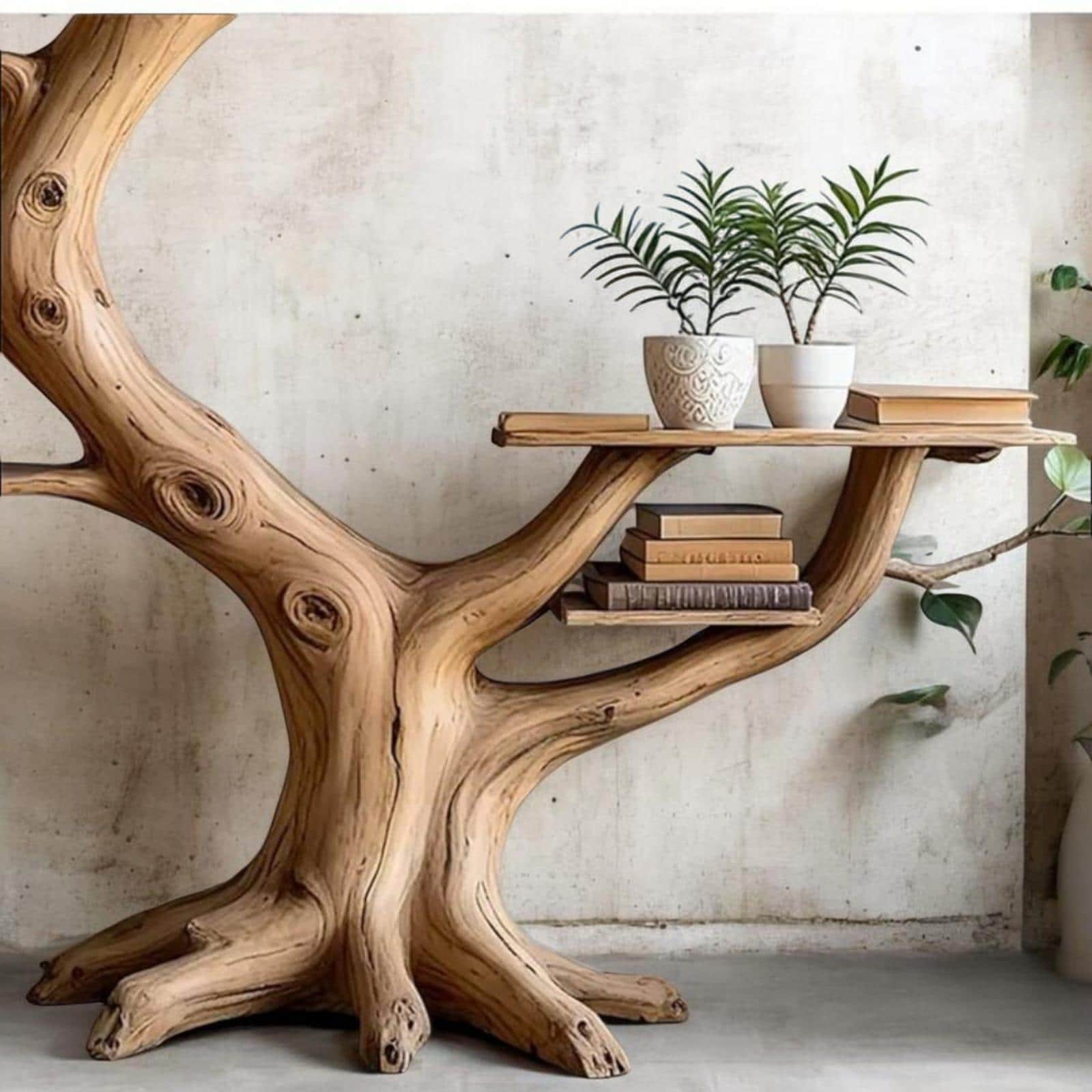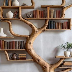 Transform your wall into a work of art with this handcrafted tree-shaped wooden floating shelf. Featuring organic branch-like curves, this sculptural shelf serves as both functional storage and a striking decorative statement.