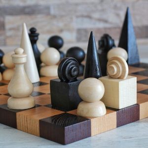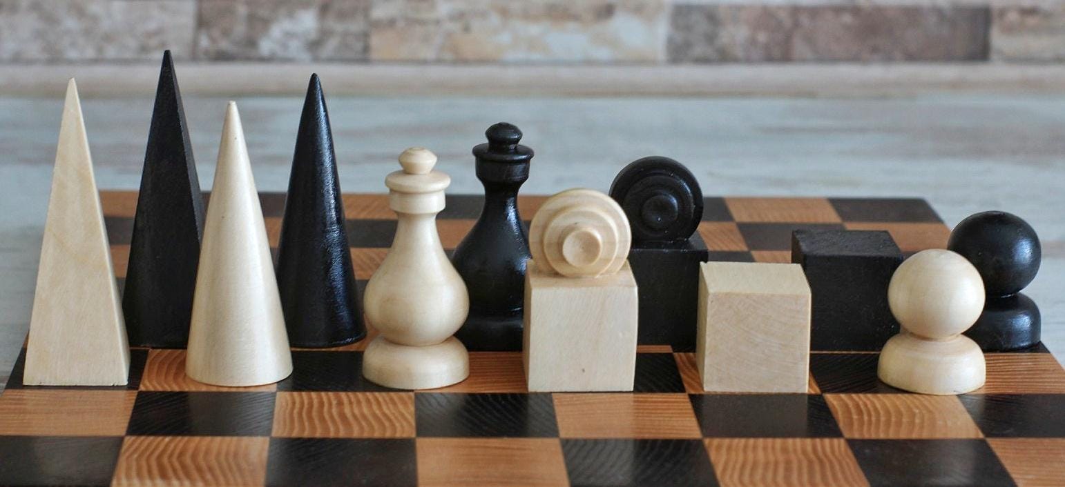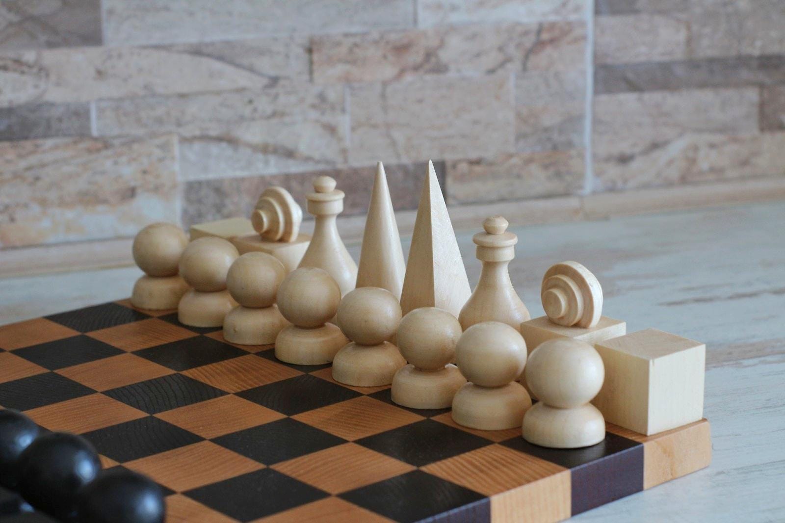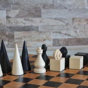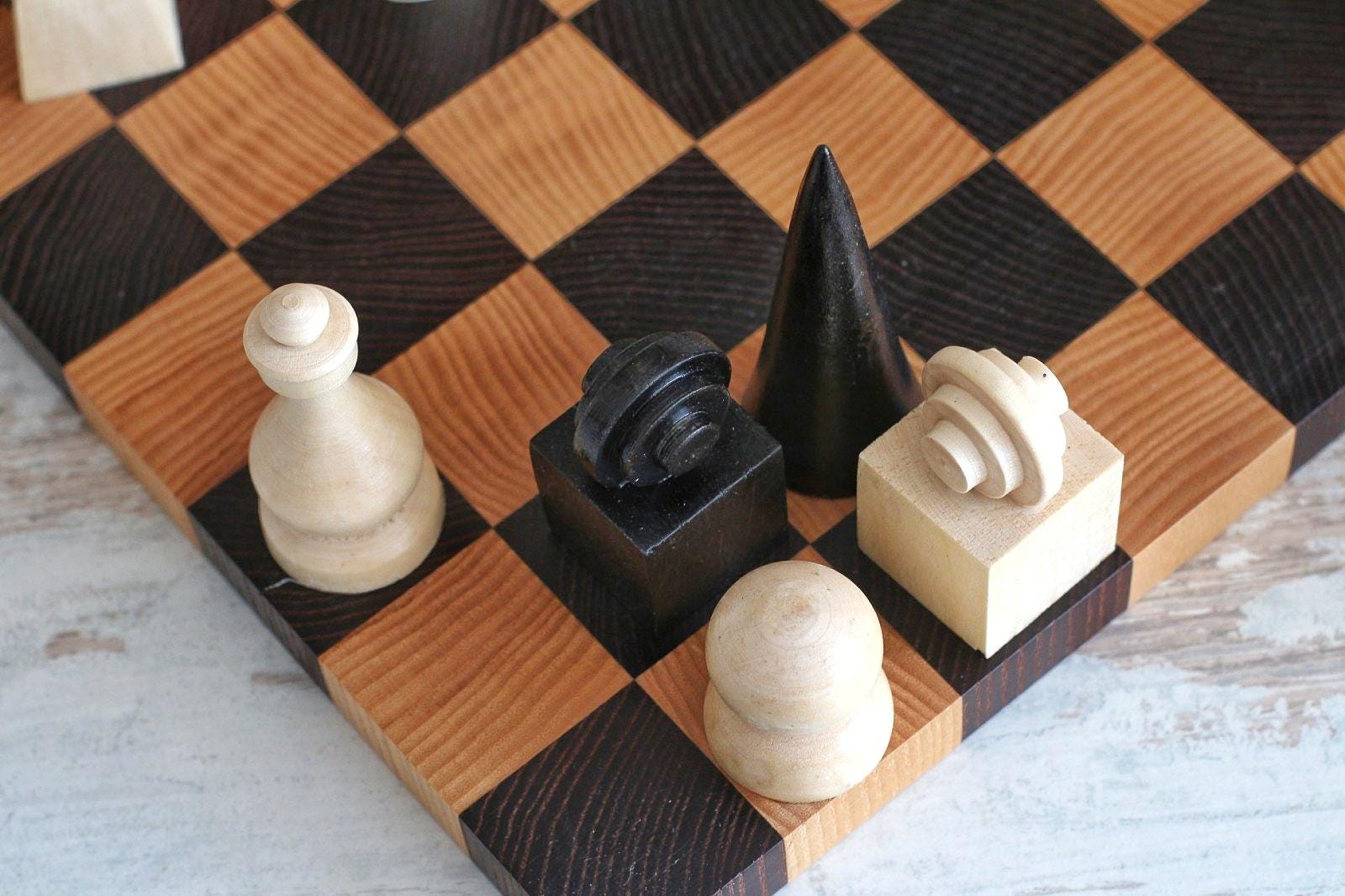A refined hand-carved chess set inspired by the principles of Bauhaus design — clean geometric forms, functional beauty, and premium materials. Crafted from high-quality solid walnut, this set is both a functional game set and a work of art.