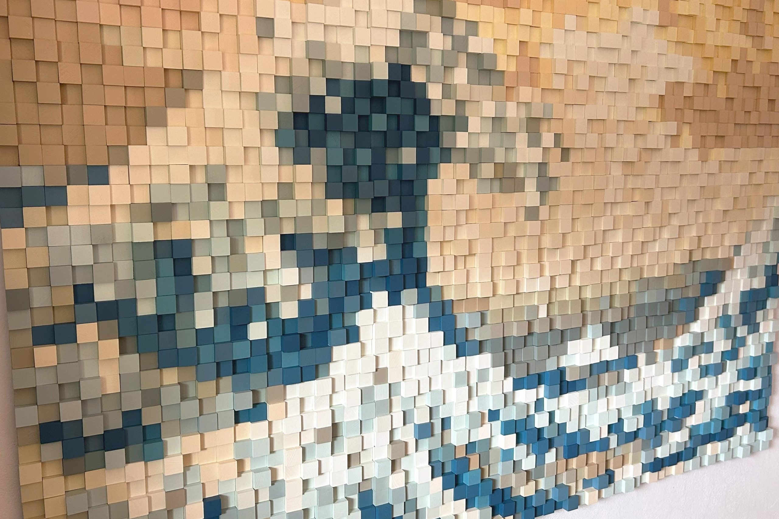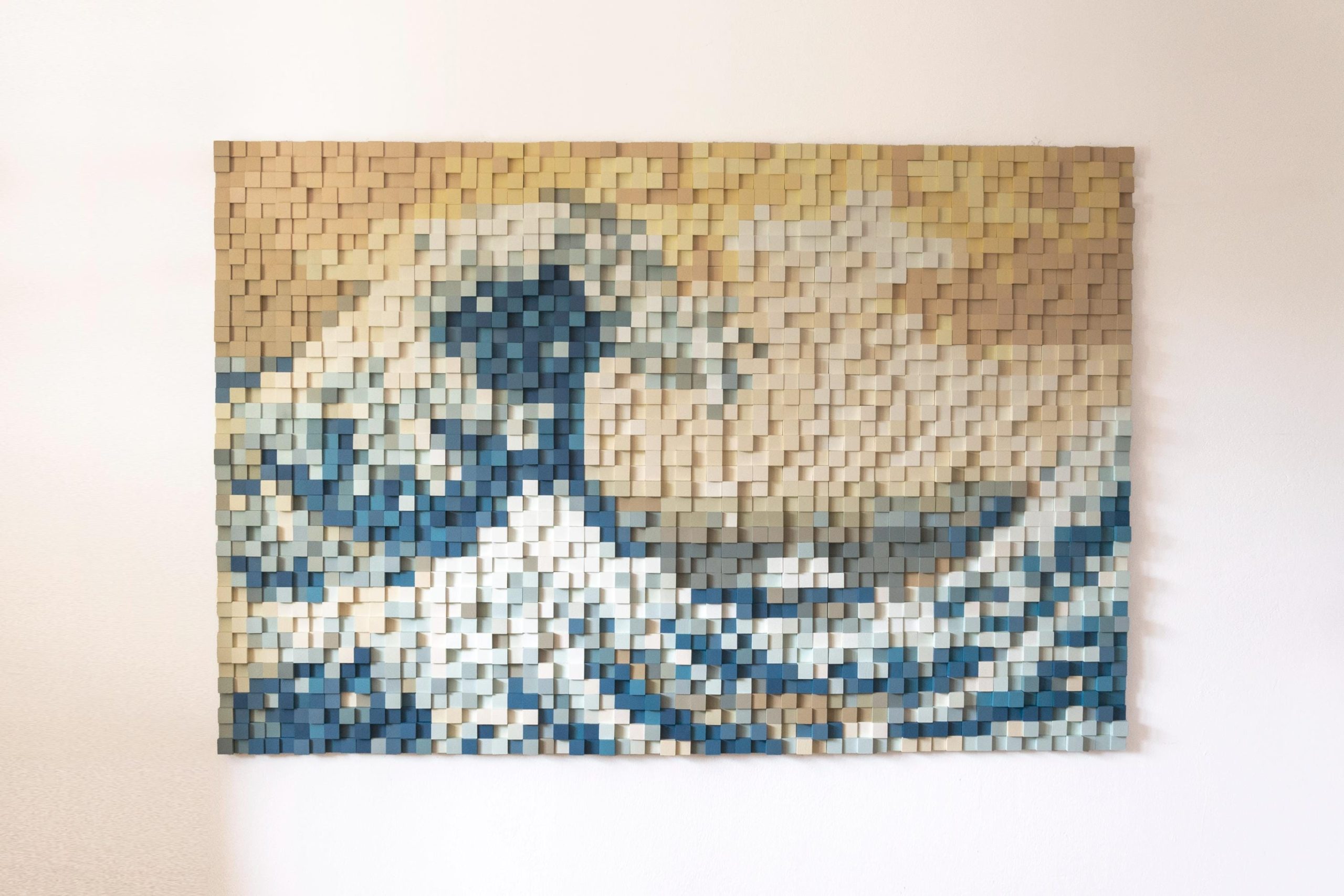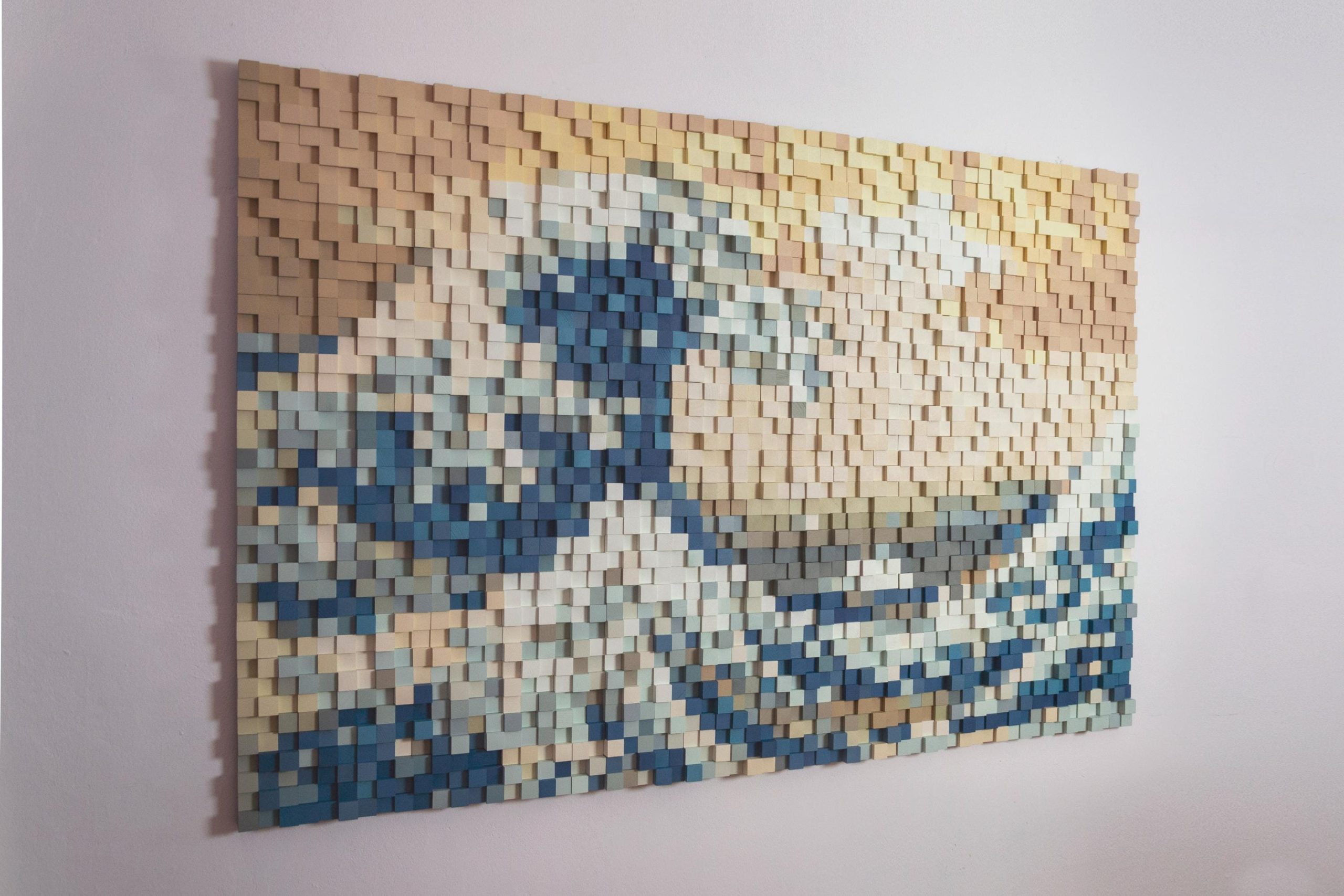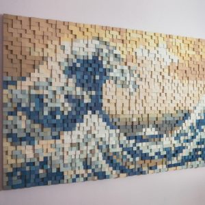 Handmade 3D Wooden Mosaic Wall Art – The Great Wave of Kanagawa Wood Sculpture