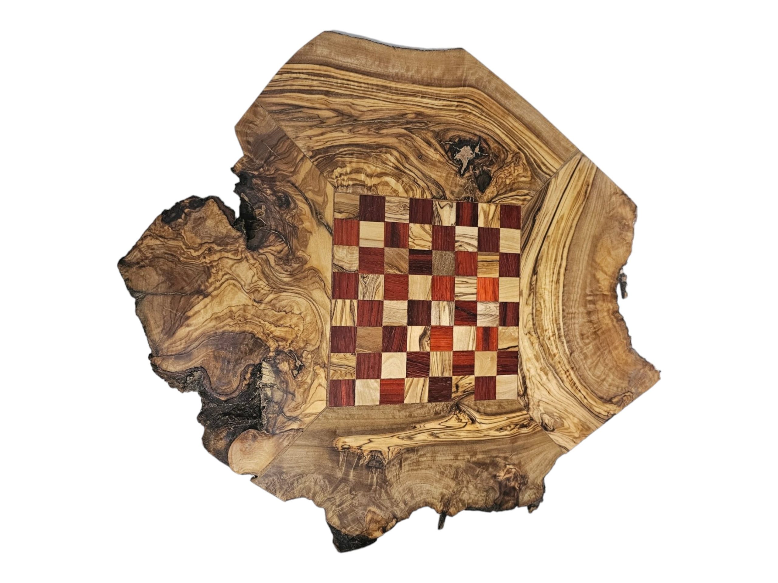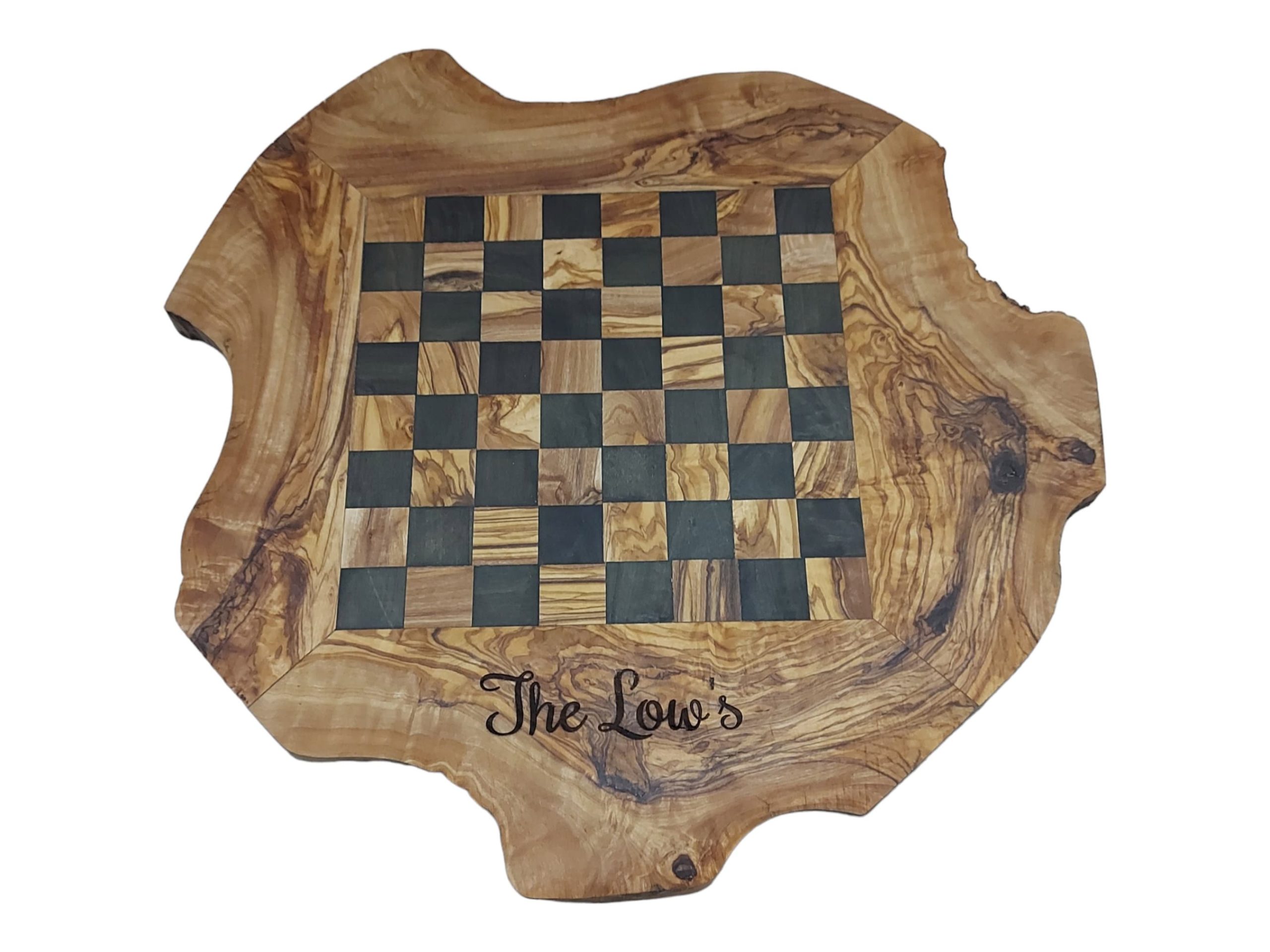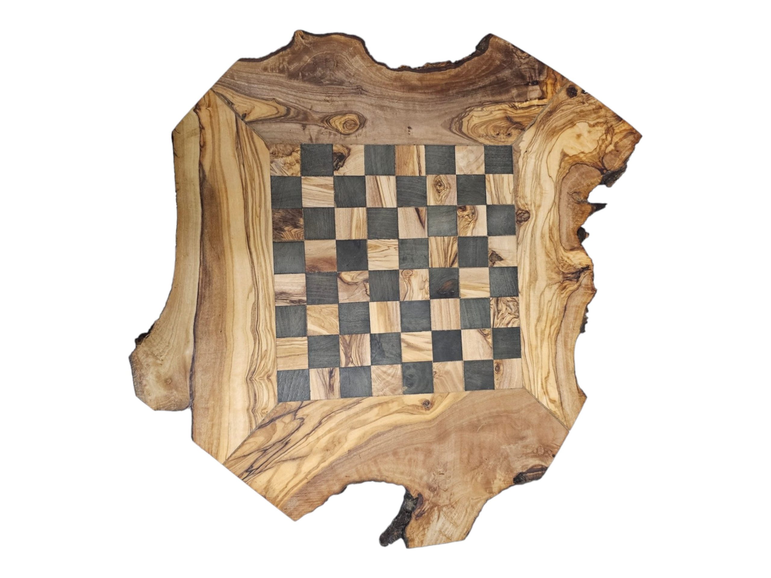 A beautifully handcrafted chess set made entirely from natural olive wood, including board and all 32 individually hand-carved pieces. The warm, golden tones and distinctive grain of olive wood make every set truly one of a kind.
